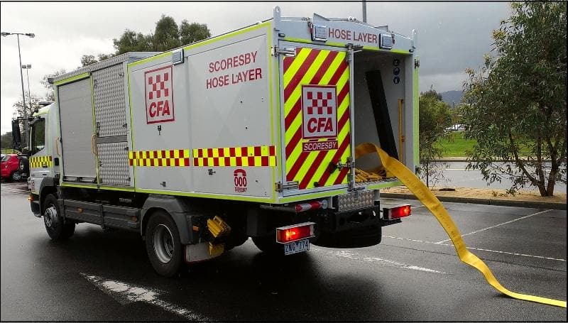 The HoseLayer mechanically performs the job of laying out large diameter fire hoses at a rapid speed of 40km/hour as the truck moves forward. The unit can store thousands of meters of large fire hoses (up to 300mm/12-inch). This provides firefighters access to water sources located at a far distance.
